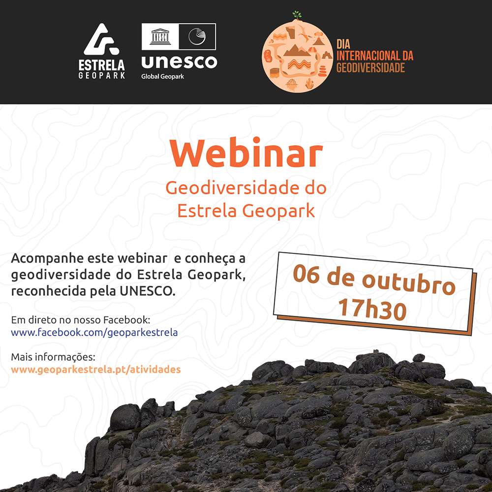 No dia 6 de outubro, assista ao Webinar "Geodiversidade do Estrela Geopark" na Rede Social Facebook.