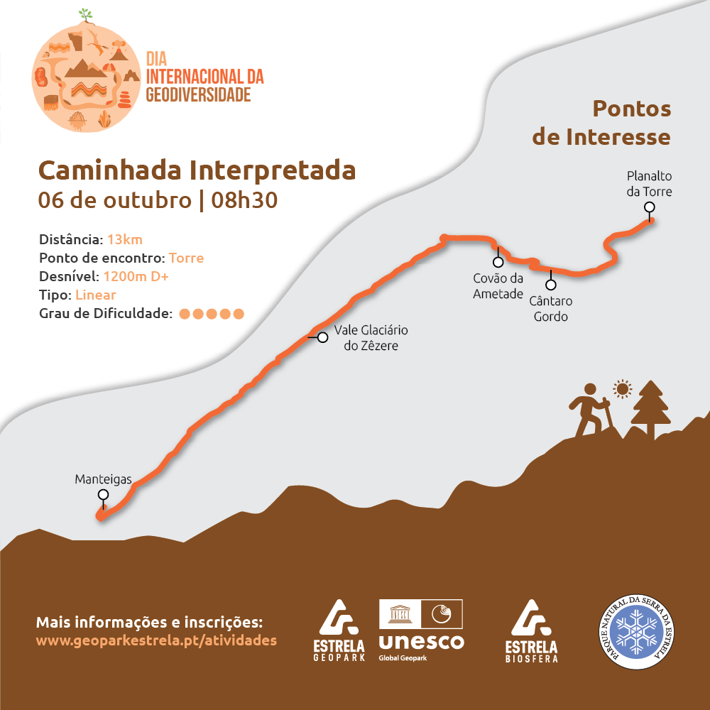 O Dia Internacional da Geodiversidade é celebrado no dia 6 de outubro e foi proclamado pela UNESCO em 2021, na sequência de uma campanha de base, levada a cabo por organizações de geociências de todo o mundo. Esta é uma celebração mundial que visa reunir as pessoas para promover os muitos aspetos da geodiversidade e a sua importância para a sociedade. O tema deste ano é “Conservar o Passado - Sustentar o Futuro”. Este ano, o Estrela Geopark Mundial da UNESCO comemora este dia com a realização de uma caminhada interpretada em pleno Vale Glaciário do Zêzere.