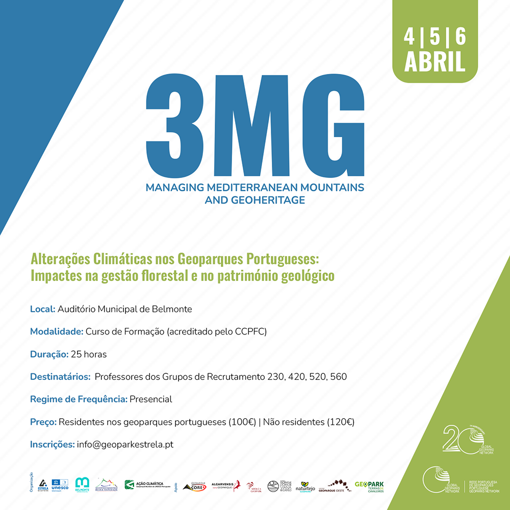 A 3MG, uma conferência dedicada à gestão das montanhas mediterrânicas, propõe-se a abordar temas importantes, com ênfase nas questões das alterações climáticas e dos incêndios florestais. Este curso de formação visa discutir os desafios enfrentados pelos frágeis ecossistemas de montanha e pelas comunidades dependentes destas áreas. Utilizando a Serra da Estrela e outros territórios classificados como Geoparques Mundiais da UNESCO como casos de estudo, a conferência destaca eventos recentes, como os incêndios de agosto de 2022, para ilustrar as complexidades enfrentadas. Ao focar na preservação do património natural e cultural, bem como no papel educativo, a 3MG reforça a importância dos Geoparques Mundiais como catalisadores de políticas de desenvolvimento regional em regiões ambiental e socioeconómicamente sensíveis, contribuindo assim para o equilíbrio entre conservação e desenvolvimento.